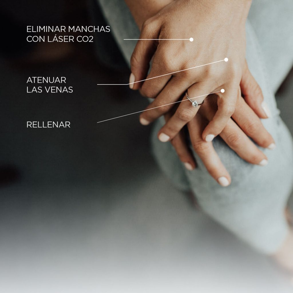 Se sirven de alta tecnología, IPL o luz pulsada y láser Q-switched para eliminar manchas y atenuar arrugas y al mismo tiempo mejorar la textura de la piel de tus manos. También infiltran Radiesse (hidroxiapatita cálcica) que es un componente que se encuentra de manera natural en tu organismo y que inyectándolo en tus manos conseguimos recuperar el volumen perdido en la zona y aumentar la producción de colágeno para mejorar la hidratación de tus manos, además de redensificar su piel y aportarle vitalidad.